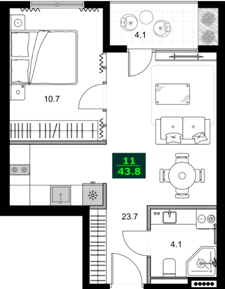 2-комнатная квартира, 43.8 м², 3 этаж в ЖК "SUMMER 365"