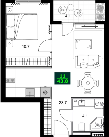 2-комнатная квартира, 43.8 м², 6 этаж в ЖК "SUMMER 365"