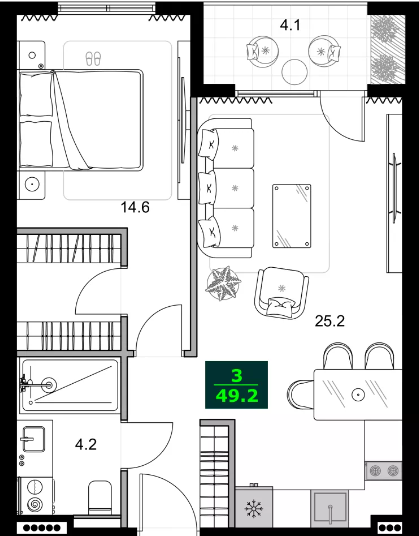 2-комнатная квартира, 49.2 м², 7 этаж в ЖК "SUMMER 365"