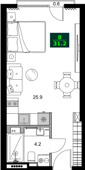 Общая площадь:31.2 м²