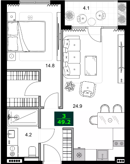 2-комнатная квартира, 49.2 м², 4 этаж в ЖК "SUMMER 365"