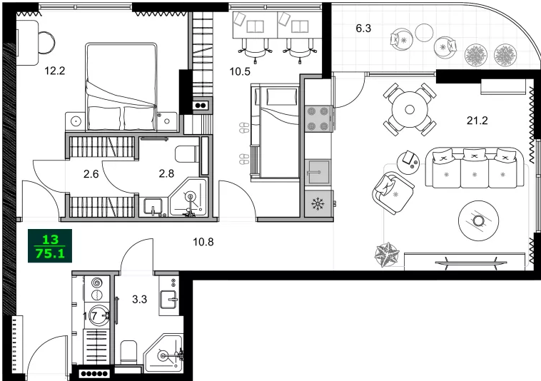 - 3-комнатные: