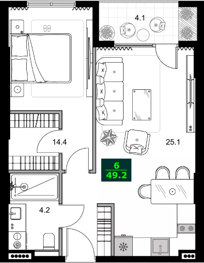 2-комнатная квартира, 49.2 м², 10 этаж в ЖК "SUMMER 365"