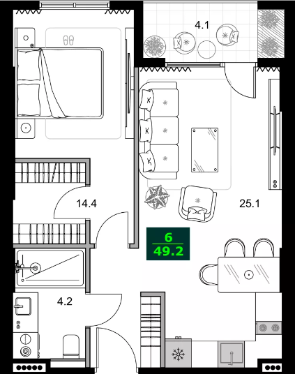 2-комнатная квартира, 49.2 м², 12 этаж в ЖК "SUMMER 365"