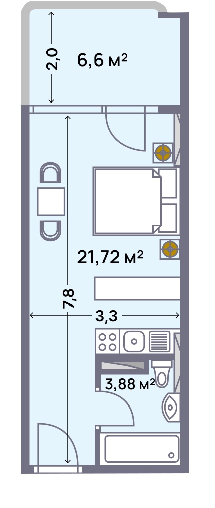 Квартира, 32.2 м², 18 этаж в ЖК "Wyndham Grand Aqua"