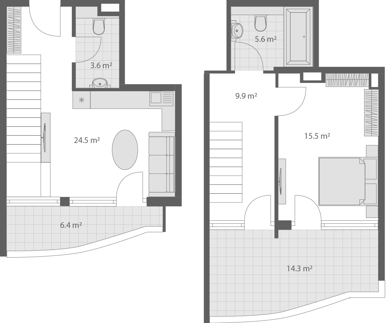 - 2-комнатные: